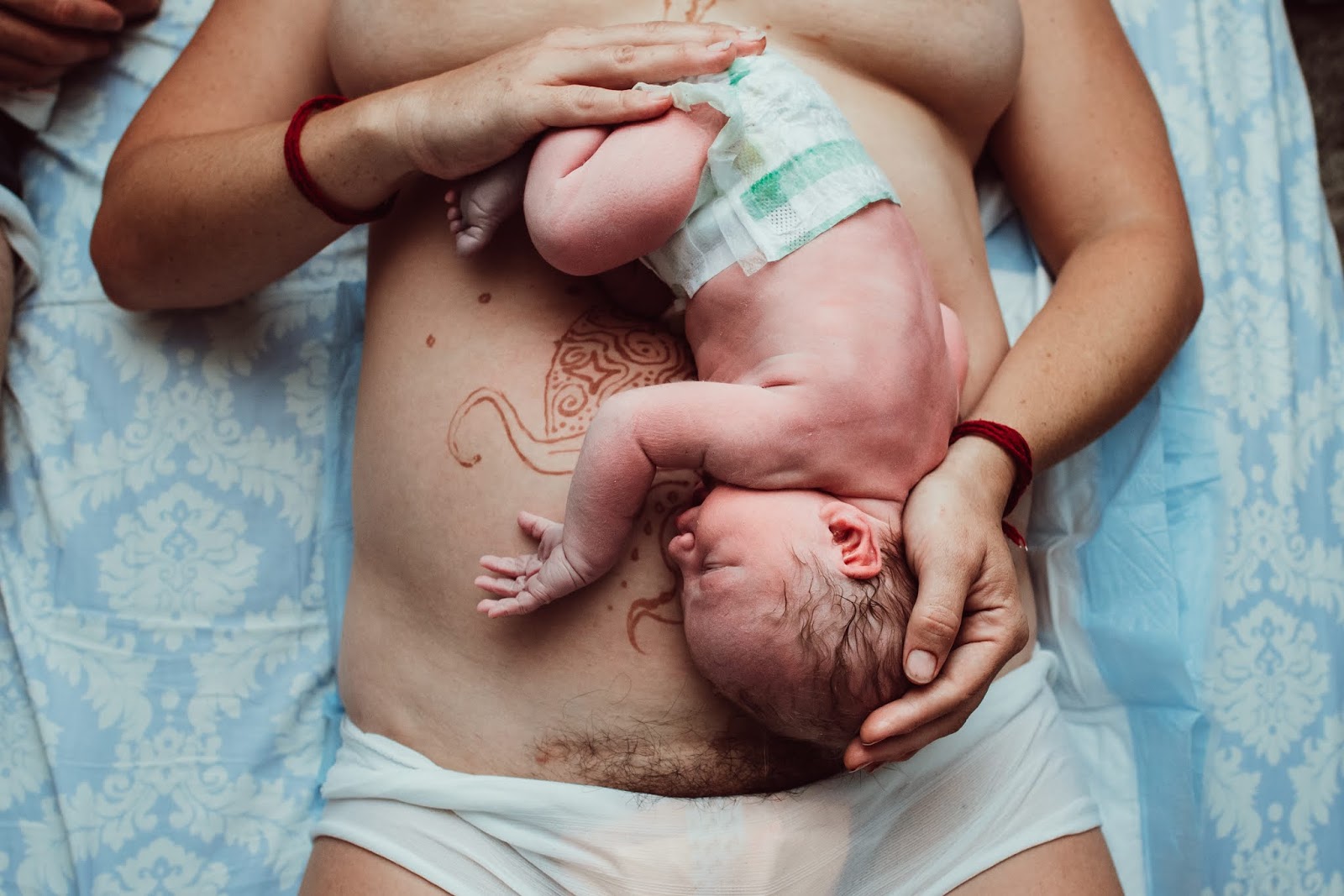 in this pregnancy) belly and the beautiful henna tattoo he had painted on it.